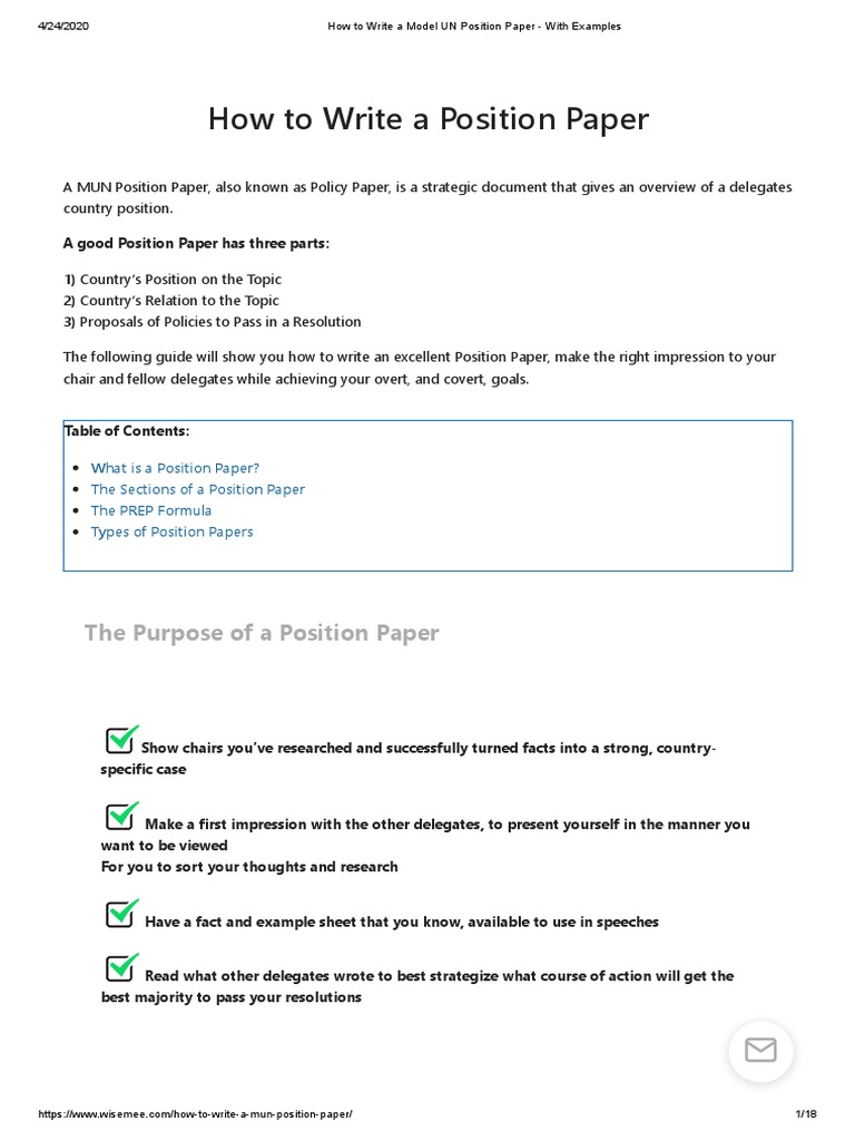 Essentially, the paper forces you to write out you country's viewpoints in paragraph form. A position paper is a diplomatic statement of your country's position on the issues before your for example, if you are the delegate representing romania in the general assembly first committee. Position paper topic ideas as suggested by experienced tutors for the students! Position paper topics the common challenge you might have already faced as a college student. The position paper is based on facts that provide a solid foundation for your argument.